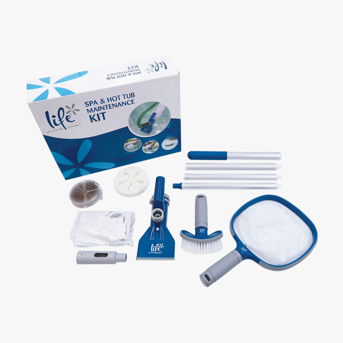 • Includes: Supa-Vac underwater vacuum, venturi pump attachment, filter sock & retaining clip, 1.2m telescopic pole, spa scoop, spa brush, scum absorbing disc, snap on garden hose connection.
